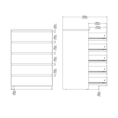 S petimi prostornimi predali na jeklenih krogličnih vodilih zagotavlja veliko prostora za vaše stvari. Naravni hrastov dekor daje komodi naraven videz, ki ga je enostavno vključiti v različne sloge notranjosti. Zasnova brez ročajev poudarja čiste linije in sodobno estetiko.