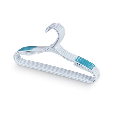 Močni obešalniki iz trde plastike z zarezanimi konci, ki preprečujejo drsenje oblačil