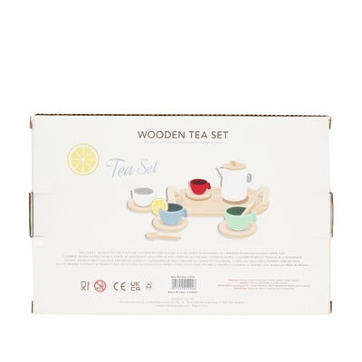 Komplet je izdelan iz visokokakovostnih materialov, ki zagotavljajo vrhunski videz in vzdržljivost tudi ob večurni igri. V kompletu boste našli lesen pladenj, štiri silikonske skodelice z lesenimi podstavki, silikonski čajnik z lesenim pokrovom, dve leseni žlici in leseno rezino limone za popolno doživetje ob čaju.