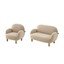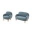 Fotelj ima dimenzije 56 x 53 x 52 cm (širina x globina x višina), medtem ko kavč ponuja več prostora z dimenzijami 89 x 53 x 52 cm (širina x globina x višina). Oba kosa pohištva navdušujeta z zaobljenimi oblikami in mehko, prijetno teksturo. Stabilnost zagotavljajo lesene noge.