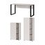 Nižja omarica z dimenzijami 61 x 34 x 110 cm (širina x globina x višina) ponuja tri odprte predelke in en zaprt shranjevalni prostor za vrati, za katerimi sta dve fiksni polici.