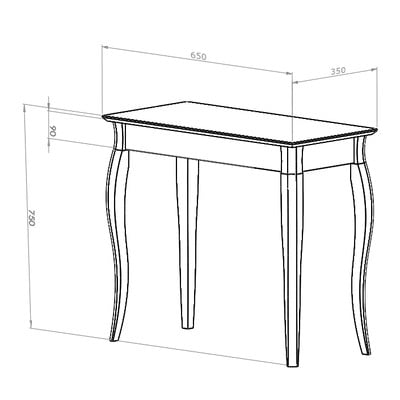 Miza meri v višino 74 cm, dejanska plošča pa 65 x 35 cm.
