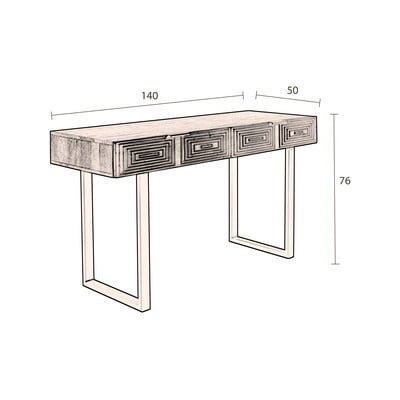 Medtem ko železna osnova skrbi za trdno in stabilno podlago, se zgornji del iz mag lesa ponaša z visoko trdoto in očarljivim naravnim vzorcem. Funkcionalnost dopolnjujeta dva praktična predala, ki sta idealna za shranjevanje vseh vrst drobnih predmetov.