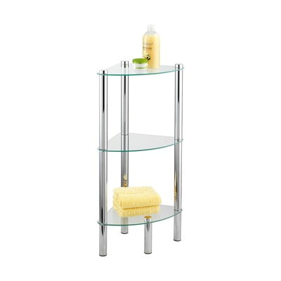 Polica je videti odlično. Je skrbno izdelan, idealen za kozmetiko in ga boste brez težav ohranjali čistega. Kombinacija steklenih in kromiranih stebri...
