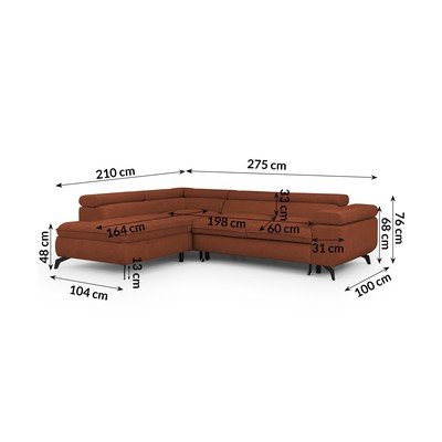 Iz šeniljeNastavljiva/raztegljiva/s prostorom za shranjevanjeLevi kot/v obliki črke LV barvi terakotePrimerna za hišne ljubljenčke/odporna na madežeŠtirisedežnaŠirina 275 cm