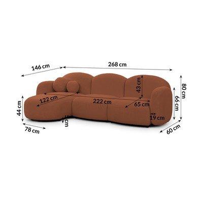 Kotna sedežna garnitura iz tkanine bouclé v barvi terakote (levi kot/z ležalnikom) Orbit – Ropez
