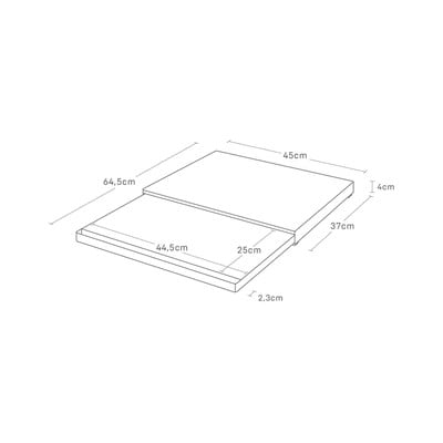 S to izvlečno polico, ki takoj razširi delovno površino, ko jo delno zasedajo majhni aparati, lahko kar najbolje izkoristite kuhinjski prostor. Njeno dolžino lahko prilagodite od 39 do 64,5 cm.
