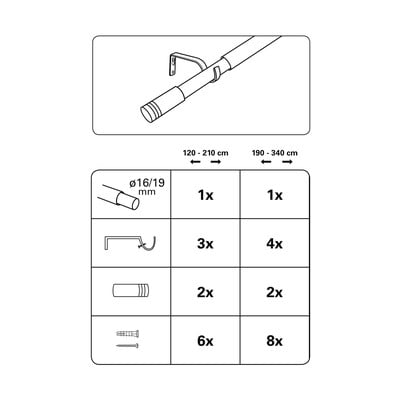 Končni videz svoje notranjosti dopolnite z ustreznimi zavesami. Njihovo zanesljivo pritrditev zaupajte v roke te kovinske karnise Gardinia, ki je opremljena z nosilci, zaključki in vsem potrebnim montažnim materialom.