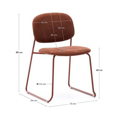 Stol Meli znamke Kave Home je zložljiv, zato ga je enostavno shraniti. Naslonjalo in sedež sta oblazinjena v šenil in imata notranjo ojačitev iz topolovih vezanih plošč.