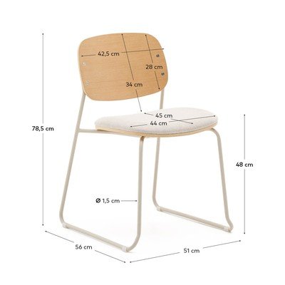 Stol Meli znamke Kave Home je zložljiv jedilni stol, ki navdušuje s preprostim, a elegantnim dizajnom z zaobljenimi oblikami hrbtišča in sedeža.