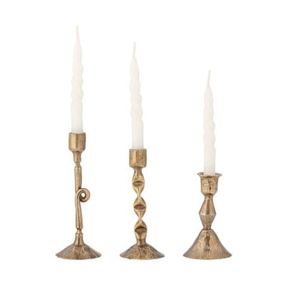 Svečeniki Efsa znamke Bloomingville so komplet treh kovinskih svečnikov, ki jih odlikuje nežna patinirana površina. Vsak kos ima edinstven dizajn in drugačno obliko, kar celotnemu kompletu daje poseben značaj.