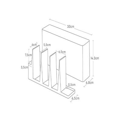 Dobro je vedeti: Organizator je primeren za kuhinjske pripomočke različnih velikosti in za majhne deske za rezanje debeline do 6 mm in dolžine do 25 cm.