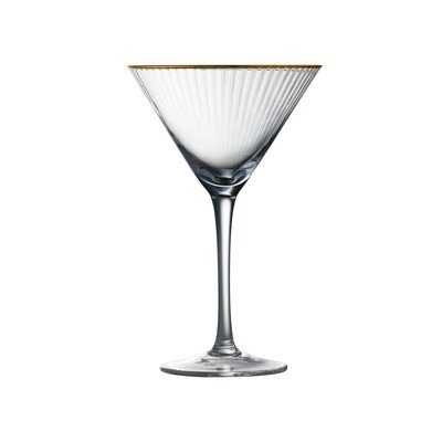 Komplet štirih kozarcev za koktajle Palermo znamke Lyngznamke Glas. Elegantna rebrasta oblika z zlatim robom jim daje eleganten vintage videz, vsak kos pa je zaradi ročno izdelane zasnove edinstven.