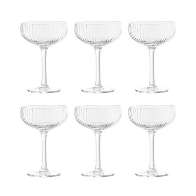 Komplet šestih kozarcev za penino Astrid znamke Bloomingville je odličen dodatek za vsako praznovanje. Elegantna oblika kozarcev s tankim pecljem bo lepo dopolnila vašo mizo. Kozarci so izdelani iz prozornega stekla.