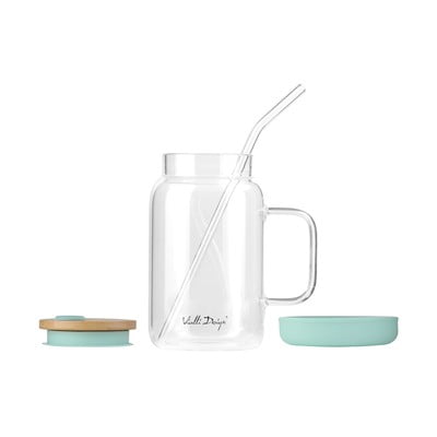 Priložena je tudi elegantna steklena slamica - zaradi njene krhkosti priporočamo previdno ravnanje. Kozarec je izdelan iz trpežnega borosilikatnega stekla in zaradi plastične podlage dobro drži stabilnost.