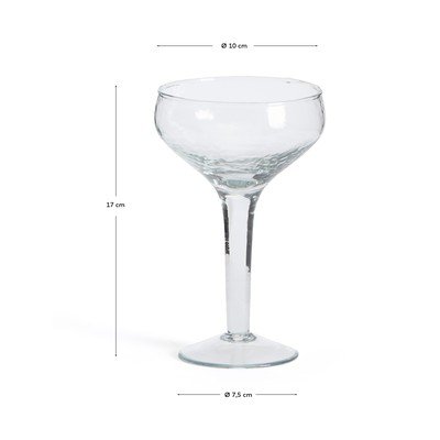 Steklo Sileia podjetja Kave Home je izdelano iz recikliranega stekla. Njegova preprosta in brezčasna oblika z značilno teksturo, ki spominja na kovano površino, je primerna za različne sloge in priložnosti. Zlahka bo dodal poseben značaj vaši jedilni izkušnji.