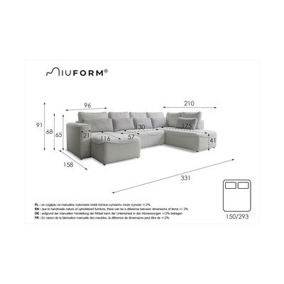 Raztegljiva/s prostorom za shranjevanjeV obliki črke "U"Kremno belaVečsedežnaŠirina 331 cmGlobina 158 cmGlobina sedeža 57 cm