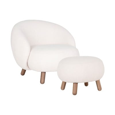 S počivalnikom za noge, iz tkanine bouclé, kremno bel