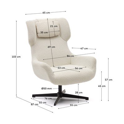 Z naslonom, vrtljiv, iz tkanine bouclé, kremno bel