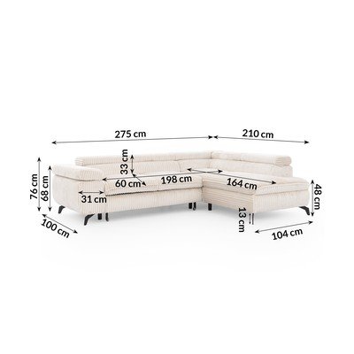 Iz rebrastega žametaNastavljiva/raztegljiva/s prostorom za shranjevanjeDesni kot/v obliki črke LKremno belaPrimerna za hišne ljubljenčke/odporna na madežeŠtirisedežnaŠirina 275 cm
