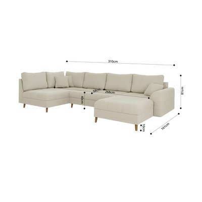 Iz rebrastega žameta, desni kot/v obliki črke "U", bež, večsedežna, širina 310 cm