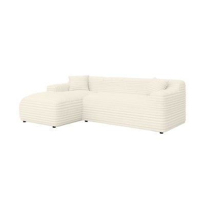Kremno bela kotna sedežna garnitura iz rebrastega žameta (levi kot/z ležalnikom) Martin – Ropez