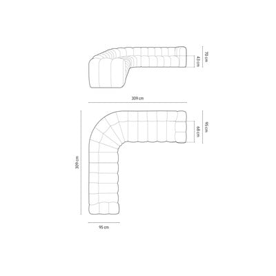 Iz šenilje, desni kot/levi kot/s kotom po izbiri/v obliki črke L, kremno bela, večsedežna, širina 309 cm