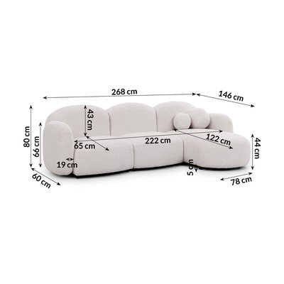 Kremno bela kotna sedežna garnitura iz tkanine bouclé (levi kot/z ležalnikom) Orbit – Ropez