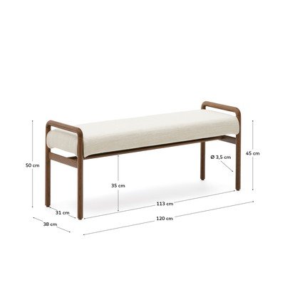 Iz šenilje, iz masivnega lesa/oblazinjena, kremno bela/v naravni barvi, širina 120 cm, globina 38 cm, višina 50 cm