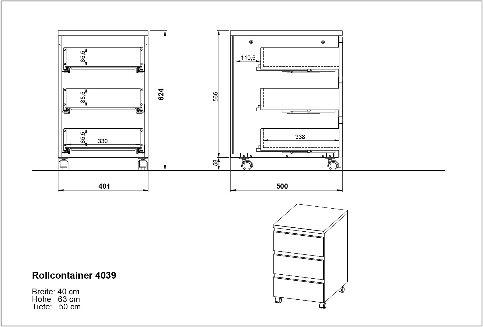 Na koleščkih, iz iverne plošče, površinska obdelava: Melamin, v mat dekorju, kremno bela, širina 40 cm, višina 63 cm, globina 50 cm