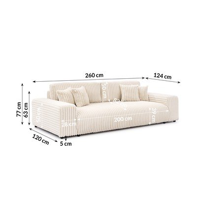 Iz rebrastega žameta, raztegljiva/s prostorom za shranjevanje, kremno bela, vodoodporna/odporna na madeže, trisedežna, širina 260 cm