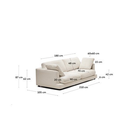 Iz šenilje, bež, trisedežna, širina 210 cm