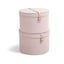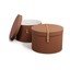 Komplet sestavljata 2 zložljivi škatli, ki ju odlikujeta eleganten usnjen trak in kovičena konstrukcija za večjo trdnost.