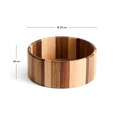 Ta skledica je zasnovana tako, da ni le funkcionalen, ampak tudi dekorativen element. Zaradi svojega črtastega vzorca iz različnih vrst lesa se odlično poda v kuhinjo in jedilnico, kjer bo služila za postrežbo jedi ali kot elegantna dekoracija.