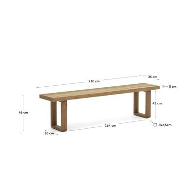 Iz masivnega lesa, v naravni barvi, nosilnost 230 kg, širina 210 cm, globina 35 cm, višina 46 cm