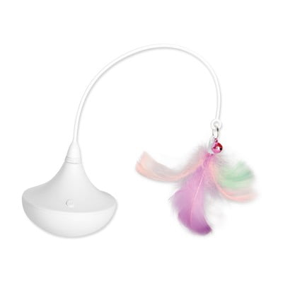Ta interaktivna igrača bo vaši mački zagotovila več ur zabave in stimulacije. Sestavljena je iz vrtljive podlage z obeskom iz perja, ki se premika in utripa v različnih intervalih. To v mačkah prebudi in okrepi naravne lovske instinkte. Za povečanje privlačnosti lahko v namenski spodnji del igrače vstavite mačjo meto. Za delovanje sta potrebni dve bateriji AA, ki nista priloženi.