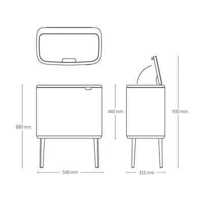 Kompaktna zasnova zagotavlja, da se koš prilega manjšim prostorom, na primer tik ob steni ali v kotu. Priključne nogice z nastavljivo nedrsečo spodnjo stranjo ga tudi dvignejo, kar učinkovito varuje vaš hrbet in olajša čiščenje pod njim.