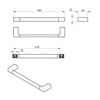 Stensko, medeninasto, v zlati barvi, 45x7 cm, višina 3 cm
