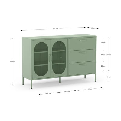 Kovinska, površinska obdelava: prašno lakiranje, mentolno zelena, širina 140 cm, višina 90 cm, globina 40 cm