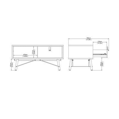 Z dimenzijami 48x102 cm se prilega vsaki dnevni sobi. Ponuja odprt prostor za shranjevanje in velik predal za vzdrževanje reda. Lesena plošča in črne kovinske prekrižane noge ustvarjajo sodoben in eleganten videz. Preprosta zasnova se odlično prilega sodobni notranjosti.