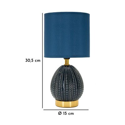 S tekstilnim senčilom, keramična, z vtikačem, modra, višina 30,5 cm
