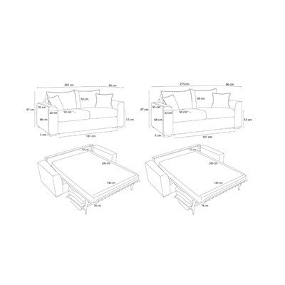 Iz rebrastega žameta, za spanje/raztegljiva, modra, trisedežna, širina 225 cm