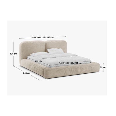 Bež oblazinjena zakonska postelja s prostorom za shranjevanje in z letvenim dnom 200x200 cm Martina – Micadoni