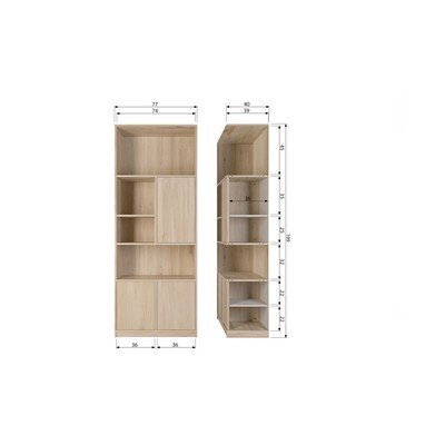 Modularna knjižna polica ModulairV hrastovem dekorju, iz iverne plošče, površinska obdelava: Furnir, v naravni barvi, širina 77 cm, višina 199 cm, globina 40 cm
