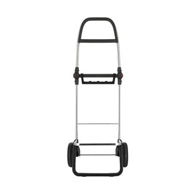 Nakupovalna torba na kolesih serije Mini Bag MF 2 Logic navdušuje z dvojnim sistemom zlaganja, ki omogoča, da se za parkiranje vozička zloži ne le sprednja opora, temveč tudi sama konstrukcija. S pritiskom na stranske gumbe se zloži na polovico in tako zavzame malo prostora v omari ali v avtomobilu. Lahka konstrukcija skupaj z ergonomskim nedrsečim ročajem zagotavlja udobno rokovanje.