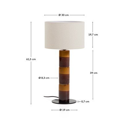 Namizna svetilka Mavran znamke Kave Home se ponaša s podstavkom iz glazirane keramike, ki je sestavljen iz izmeničnih pasov. Njena vitka vertikalna oblika bo dodala dinamiko in osebnost vsakemu prostoru.