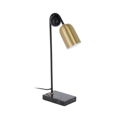 Ta namizna svetilka združuje tri priljubljene materiale - medeninasto senčilo, marmornato podlago in masivni les.