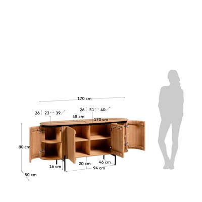 Iz masivnega mangaPovršinska obdelava: belilo/površinska obdelava: lakV mat dekorjuV naravni barviŠirina 170 cmVišina 80 cmGlobina 49 cm