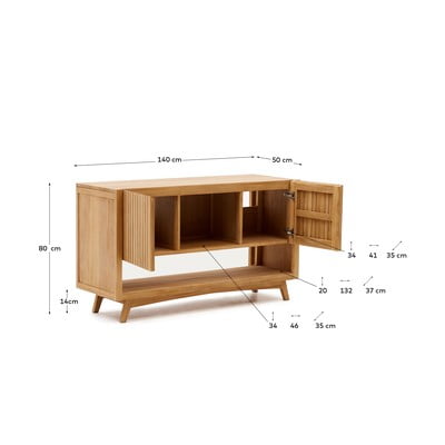 Iz masivnega tika, površinska obdelava: lak, v naravni barvi, širina 140 cm, višina 80 cm, globina 50 cm