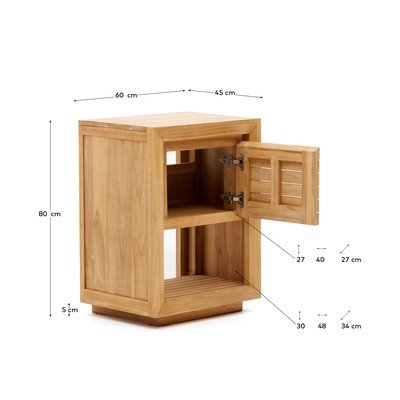 Iz masivnega tika, površinska obdelava: lak, v naravni barvi, širina 60 cm, višina 80 cm, globina 45 cm